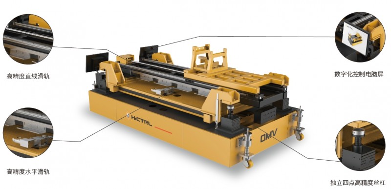 OMV飛機引擎安裝設備利用麥克納姆輪實現(xiàn)零回轉(zhuǎn)半徑、側(cè)移、全方位無死角任意漂移,具有獨立四點舉升裝置,結(jié)合自助導航、激光二次定位、導軌精密調(diào)節(jié)、控制發(fā)動機的移動、視覺精密定位完成六自由度精密裝配。