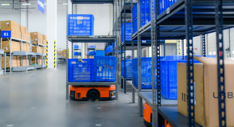 快倉為UR自主研發了機器人集群操作系統,機器人會在得到上架指令后,自主計算調度任務,將貨架搬運至有空閑位置的區域,大大提高揀貨效率。并與寶開的WMS系統進行緊密對接,靈活進行揀貨、補貨、盤點、貨架移位、車輛移動、充電、貨架歸位等業務類型。同時及時響應任何異常情況,結合大數據和機器學習等技術,可以保障作業區作業的高效完成。