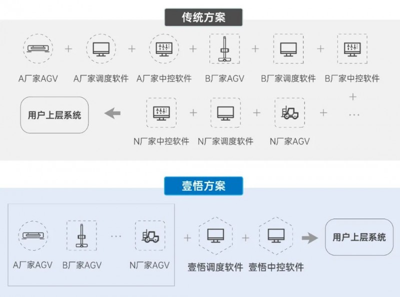 同等作業(yè)效率下,壹悟科技星羅自動(dòng)化工廠解決方案,不僅可以輕松實(shí)現(xiàn)“一套系統(tǒng)調(diào)度全場”,大幅降低改造成本與對(duì)接工作量,還可以通過軟件靈活配置和修改流程,快速適應(yīng)業(yè)務(wù)變化。