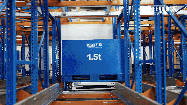 公牛轉換器智能立體倉庫項目選用曠視智能托盤四向車解決方案,包括四向穿梭車(簡稱“四向車”)、提升機、貨架、輸送線等系統,能夠完成原料和半成品的自動化儲存、出入庫作業,大幅減少人工搬運,有效提高作業效率和空間利用率。