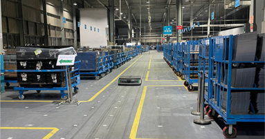 采用密集存儲,部署AMR自主搬運,提高場地面積使用率,實現柔性靈活搬運存儲;