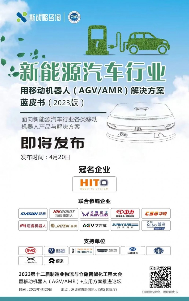 《新能源汽車行業(yè)用移動機(jī)器人(AGV/AMR)解決方案藍(lán)皮書(2023版)》是CMR產(chǎn)業(yè)聯(lián)盟與新戰(zhàn)略移動機(jī)器人產(chǎn)業(yè)研究所聯(lián)合出版的關(guān)于新能源汽車行業(yè)工業(yè)移動機(jī)器人(AGV/AMR)產(chǎn)品應(yīng)用現(xiàn)狀、市場痛點、技術(shù)路線、主流企業(yè)、發(fā)展趨勢等詳細(xì)內(nèi)參的藍(lán)皮書。藍(lán)皮書將面向全行業(yè)發(fā)行,重點向新能源汽車本體制造商、集成商、軟件服務(wù)商、政府投研等領(lǐng)域發(fā)行。