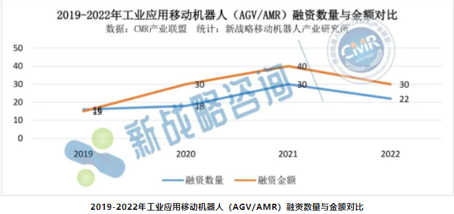 根據(jù)CMR聯(lián)盟數(shù)據(jù)統(tǒng)計,2022年工業(yè)應(yīng)用移動機(jī)器人行業(yè)共發(fā)生22起融資事件,融資總額超過30億人民幣,無論是融資數(shù)量還是融資總金額方面,都較2021年有所下降。