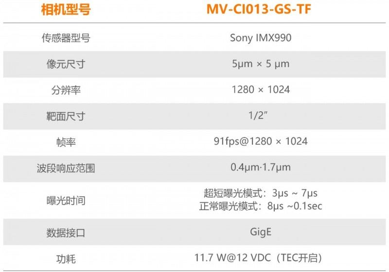 MV-CI013-GS-TF工業SWIR相機,搭載InGaAs 傳感器,內置多種圖像預處理功能,采取主動制冷控制,確保圖像質量優異,通過GigE接口實時傳輸非壓縮圖像,具備高幀率。