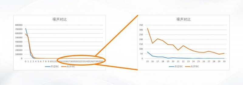 TEC開啟/關閉時,噪點測試結果如下: