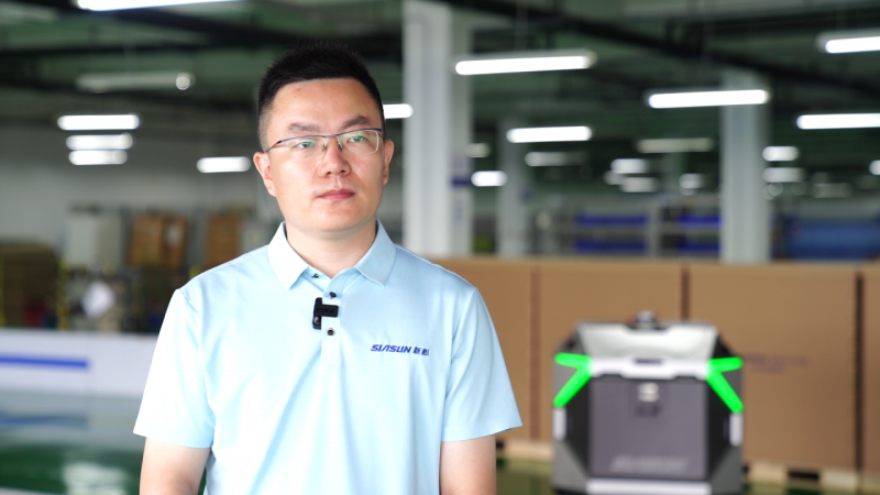 ▲ 新松點(diǎn)石科技有限公司副總經(jīng)理毛明旭介紹此次星衛(wèi)來工業(yè)清潔機(jī)器人交付情況
