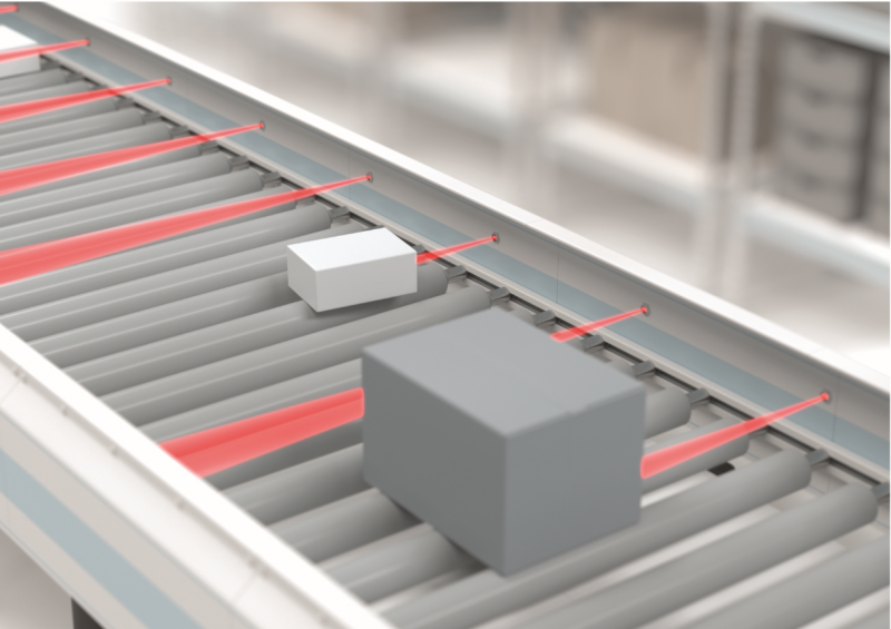 ■ 在將貨物存儲到倉位之前,通常需要檢查貨物輪廓,以確保其符合要求的尺寸。為此,LGS/LGM系列光柵傳感器可以提供物體遮擋的最高光束位置來測量物體的高度,從而預防因存儲貨物的輪廓不合適,對貨架和貨物造成機械損壞。測量值可以通過IO-link接口直接上傳至PLC,實現高效率的數據傳輸。