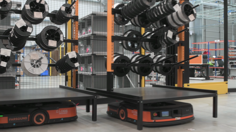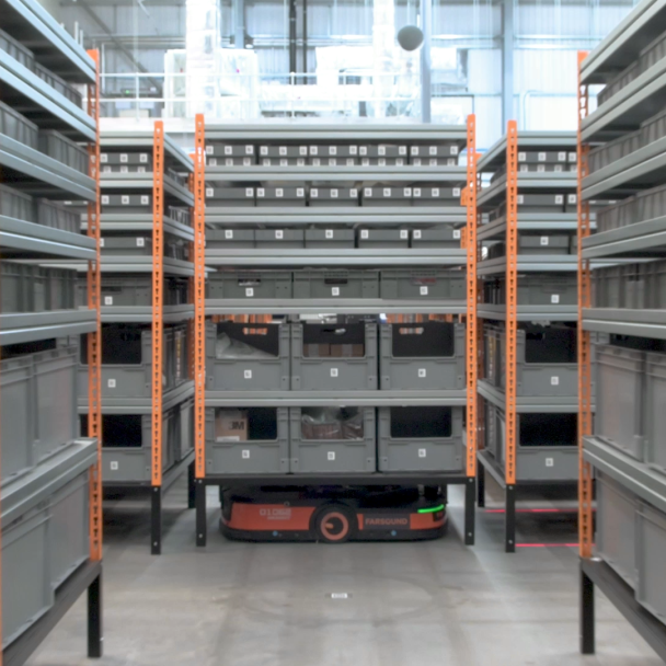 Farsound定制了多種貨架來滿足不同種類零部件的搬運(yùn)需求;同時(shí),??禉C(jī)器人LMR可實(shí)現(xiàn)貨架的柔性適配。