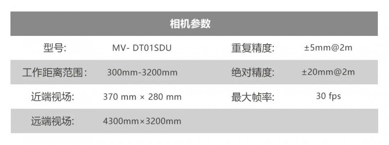MV-DT01SDU 型號(hào)TOF 感知相機(jī),是一款低成本、小體積、配置全面的立體相機(jī),憑借硬件級(jí)的深度圖像處理方案,可高速同步輸出深度圖及彩色圖,適用于體積測(cè)量、識(shí)別、定位等行業(yè)應(yīng)用。