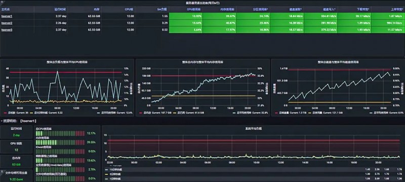 該運維管理平臺開放控制臺,可集群中的各臺服務(wù)器資源進(jìn)行整合、實時的監(jiān)管,通過可視化圖表,全覆蓋各種資源指標(biāo),幫助快速巡檢整體情況。