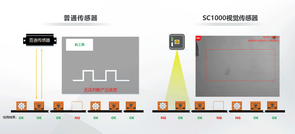 SC1000系列視覺傳感器相較傳統(tǒng)傳感器,還具備如下優(yōu)勢:
