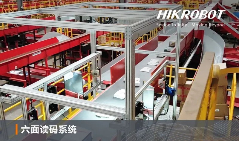 海康機器人研發的六面讀碼系統結合了機器視覺技術和高靈敏度重量傳感器,能夠自動捕捉傳送帶上整箱物料的全方位信息,包括六面條形碼、尺寸和重量,簡化了以往復雜的手動操作流程,確保整箱分揀的自動化與高效率。
