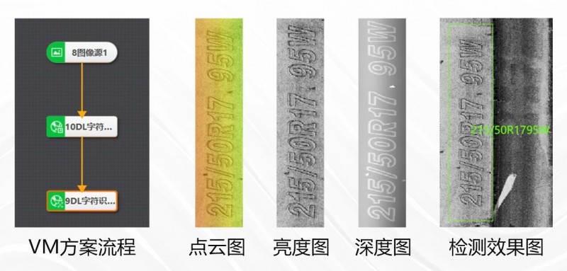 輪胎DOT碼包含了輪胎的生產(chǎn)廠家、輪胎型號(hào)、生產(chǎn)日期等信息,可通過(guò)DOT碼追溯輪胎整個(gè)生產(chǎn)過(guò)程,包括使用的原材料批次、半成品批次等信息,但通常輪胎與DOT碼均為黑色,傳統(tǒng)的二維圖像很難穩(wěn)定識(shí)別輪胎的字碼。