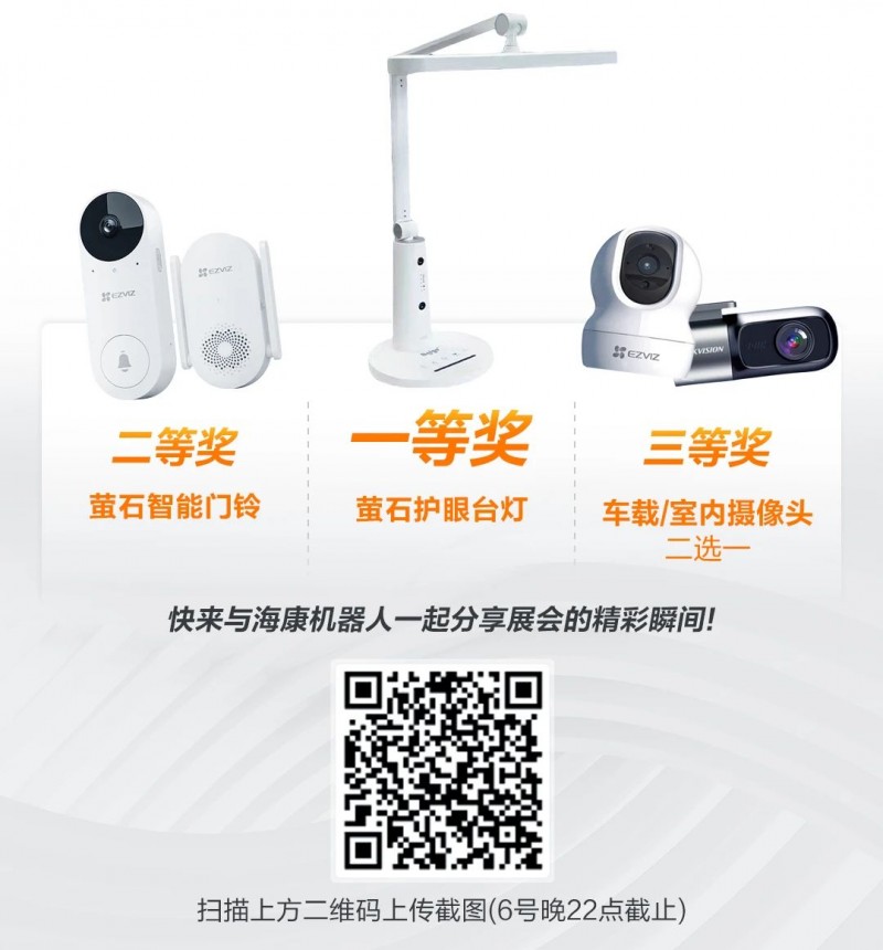 拍抖音,贏大獎(jiǎng)!7月3-5日,在抖音上發(fā)布與海康機(jī)器人汽車展相關(guān)的原創(chuàng)視頻,參與話題:#海康機(jī)器人、#汽車制造、#上海汽車裝備展/AMTS,并在7月6號(hào)晚22點(diǎn)前掃描二維碼上傳視頻閱讀量截圖,即可領(lǐng)取周邊禮品一份,更有豐富大獎(jiǎng)等您來拿!