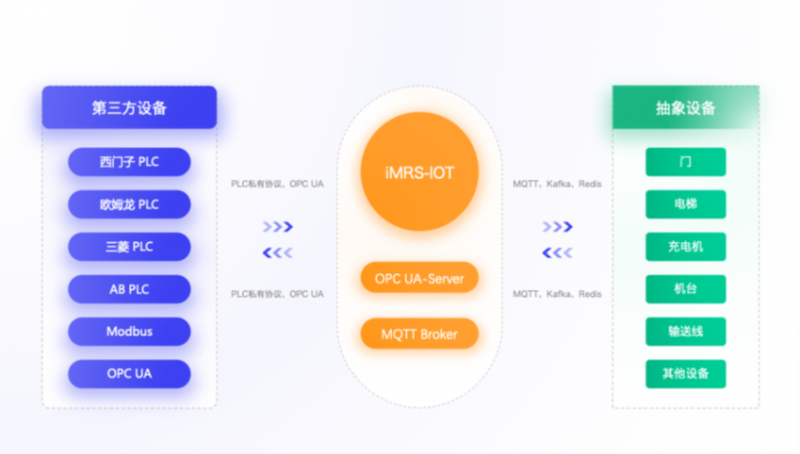 新松移動機器人iMRS平臺物聯網模塊(IOT)能快速集成廠區內各種周邊設備,提供多種主流的連接方式,將設備邏輯信號進行二次抽象轉換為易于理解的對應設備動作,完成從邏輯信號向現實動作的轉換,實現真正的全場景萬物互聯。