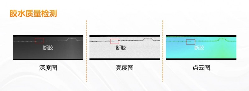在顯示屏組裝環節,需要將液晶顯示面板與背光模組等進行組合,通過3D視覺,能夠對膠水的位置度、寬度、高度、體積、缺陷等進行檢測,有效保障密封性。
