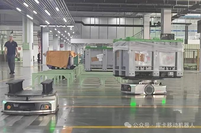 GMCC 美芝杏壇科技產(chǎn)業(yè)園引入43臺庫卡自主移動機器人KUKA AMR ink="#小程序://KUKACenter/QsT3kqGaHmILqQp" data-miniprogram-nickname="KUKA Center" data-miniprogram-type="text" data-miniprogram-servicetype="">KMP 600i,憑借出色的靈活性與自主性,覆蓋70條機加工產(chǎn)線和裝配產(chǎn)線。KUKA AMR承擔(dān)起無人化線邊物料搬運及上料重任,以往需要叉車工和物流配送員完成的工作,如今由它們高效執(zhí)行,直接節(jié)省了10個人工。