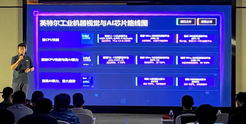 Intel中國產(chǎn)品經(jīng)理高暢則展示了Intel在機器視覺與邊緣AI領(lǐng)域的軟硬件新產(chǎn)品,通過多個行業(yè)案例展現(xiàn)出Intel軟硬件一體化賦能智慧工廠的全棧方案。
