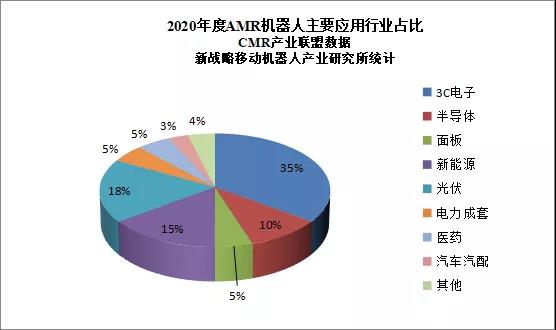 2020年AMR機(jī)器人應(yīng)用主要集中在3C電子、半導(dǎo)體、面板、新能源及光伏、電力成套及醫(yī)藥行業(yè)等制造領(lǐng)域,其中3C電子行業(yè)應(yīng)用規(guī)模最大,占比40%。值得注意的是,2020年AMR機(jī)器人在傳統(tǒng)的汽車市場也有滲透,但占比不大。主要原因在于新興制造業(yè)對生產(chǎn)線的柔性化要求程度更高,因此AMR在這些領(lǐng)域更受青睞。不過伴隨著AMR技術(shù)的進(jìn)一步成熟以及制造業(yè)產(chǎn)業(yè)升級的加速,未來AMR機(jī)器人將逐漸向更廣闊的市場延伸。