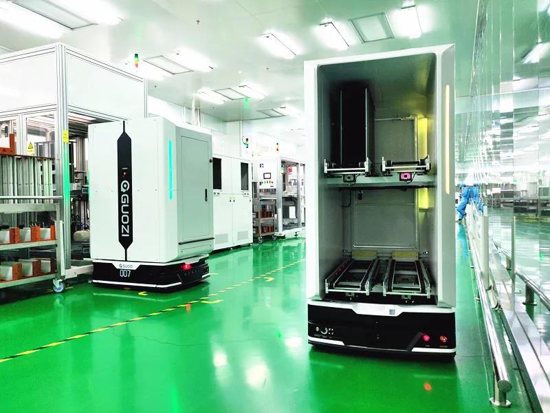 國(guó)自光伏晶硅電池片工廠AGV智能搬運(yùn)整體解決方案,能實(shí)現(xiàn)大規(guī)模智能物流機(jī)器人物料轉(zhuǎn)運(yùn),替代原有人工作業(yè)模式,大幅提升產(chǎn)能并持續(xù)保證生產(chǎn)線穩(wěn)定運(yùn)行。