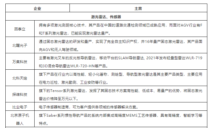 表:北京AGV相關零部件廠商(本表粗略統(tǒng)計,如有未完善之處,請指正?。?