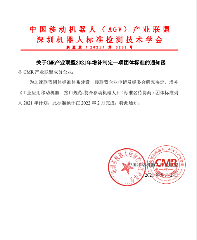 關于CMR產業聯盟2021年增補定制一項團體標準的通知函