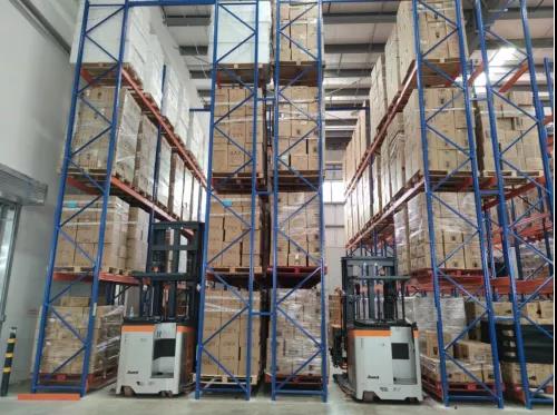 優(yōu)異的性能使得VDA116三向叉車自推出以來就受到了眾多用戶的青睞。某食品配送公司,每天有大量的物料需要進出倉庫,之前都是采用地堆的方式存儲。隨著公司業(yè)務的不斷擴大,原本的存儲方式已經不能滿足他們現有的業(yè)務需求。只有將物料上貨架,在不改變現有倉儲面積的情況下,可以增加庫位??墒侨绻捎脗鹘y(tǒng)貨架堆垛方式,在庫位的增加上并沒有很大的優(yōu)勢,未來業(yè)務再擴張后,還將面臨儲位不足的問題??蛻舳喾奖容^后決定采用卓一的三向堆垛車來改造現在的倉庫。