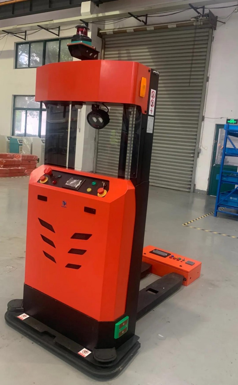窄通道三向AGV外,在一些不需要高位存儲的場景,AGV廠商們與傳統(tǒng)的叉車廠商合作,通過對車體小型化、輕量化的設計,減小車體的轉彎半徑,推出了窄通道前移堆垛AGV,這類產品的舉升高度一般在1.6m左右,工作通道在2m左右。主要面向線邊運輸、低位上料、倉儲管理等場景應用。