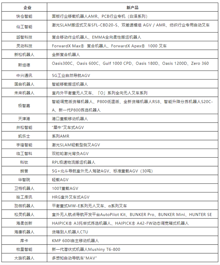 根據新戰(zhàn)略移動機器人產業(yè)研究所不完全統(tǒng)計,2021年,行業(yè)先后有27家企業(yè)推出了47款新產品,包括叉車、自然導航AGV、重載AGV、移動底盤以及各類行業(yè)專機等。