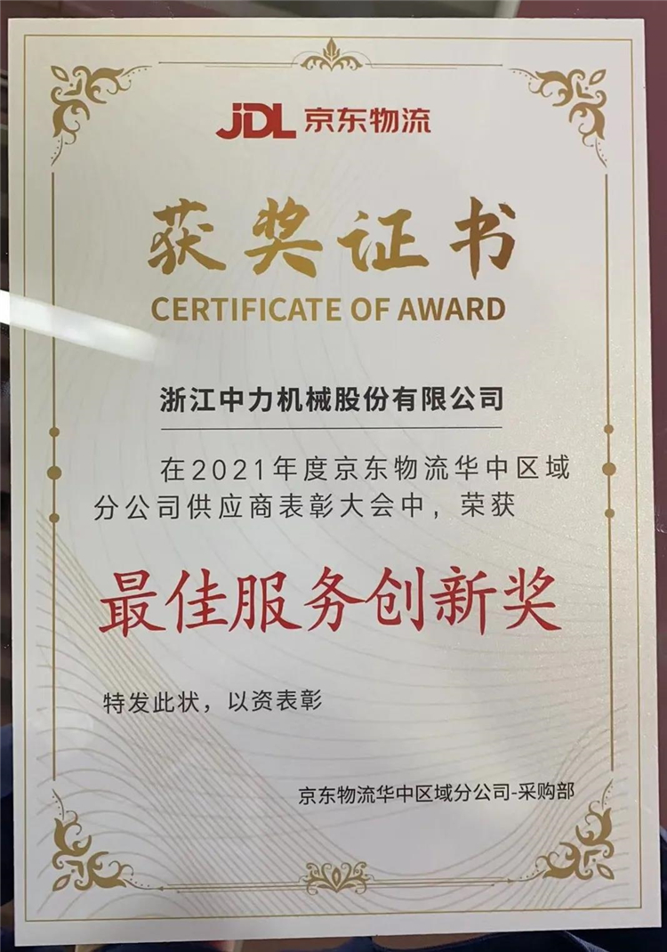 中力榮獲2021年度“最佳服務創新獎”榮譽稱號,肯定了中力在為客戶提升產業效率方面作出的杰出貢獻。
