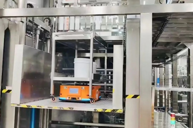 同時,由Gulf-1400-CDD無人叉車機器人負(fù)責(zé)原材料從原料倉到乳化車間的搬運、空桶的產(chǎn)線返回、半成品從產(chǎn)線到車間的中轉(zhuǎn)、包材的產(chǎn)線搬運,搭配FMS調(diào)度管理系統(tǒng),實現(xiàn)最優(yōu)任務(wù)分配方案,讓倉儲物流整體效能最大化。