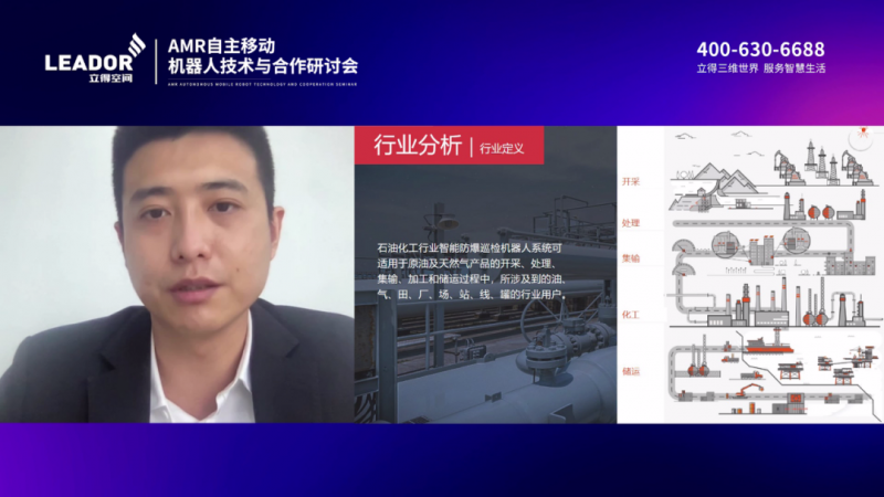 南方電網電力科技公司機器人事業部副總經理麥曉明分享了電網高精度三維建模與數據融合技術的無人網格化巡檢系統與應用。七騰科技公司企劃總監張喆介紹了石油危化行業的機器人應用。海神機器人CTO王忠輝、宇樹科技四足機器人高級產品經理李峰等介紹了各自與立得空間的合作經歷與業務成果,為產業發展帶來了應用和服務新思路。