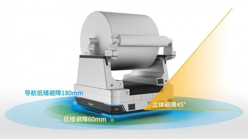 針對鋰電前工序大重量、卷狀物料的搬運困難,極智嘉推出雙舉升機器人。極智嘉雙舉升機器人采用激光SLAM導航,可搬運最高重達3噸的卷狀物料,且雙排叉臂的結構設計使機器人可在上滿料軸的同時帶走空料軸,一次到達即可完成空滿交換任務,搬運路程減半,效率翻倍、快速節能;各向對接精度可達±0.5mm;360°無死角激光避障,支持60mm低矮和45°高空障礙物檢測,可全方位保證人機混行場景下的員工和物料安全。